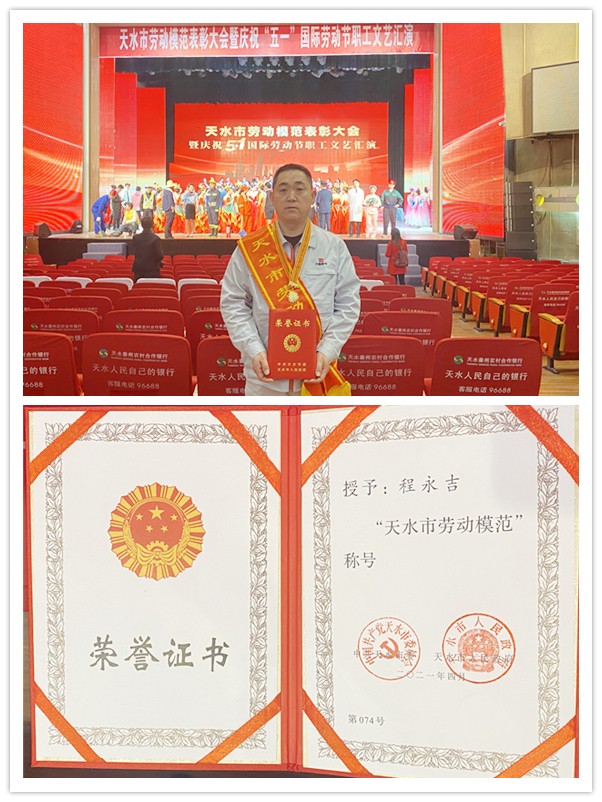 “五一”國際勞動節(jié)來臨之際,4月28日,天水市委、市政府隆重召開天水市勞動模范表彰大會,表彰近五年來天水市各行各業(yè)涌現(xiàn)出來的勞動模范。天水合金機(jī)加車間數(shù)控班組程永吉被授予“天水市勞動模范”稱號。